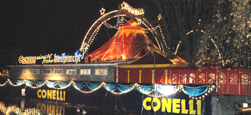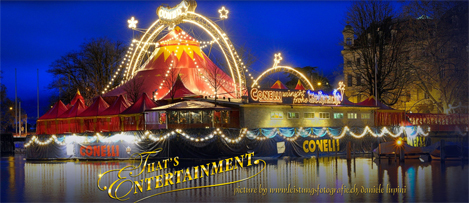 Das ist der Zirkus Conelli in diesem Jahr mit der Premiere vom November 2006. Der Zirkus Conelli steht auf dem Buchschänzliplatz an der Limmat in Zürich. Auch dieses Jahr ist es ein top Programm choreographiert von den Zirkus machern Herr Herbi Lips und Herr Conny Gasser mit seiner Grew. Die Weltspitze der Zikuswelt ist da zu bestaunen und mit einem 14 - Mann Orchester wo es sonst in der Welt nicht zu sehen gibt. Besuchen sie eine Vorstellung, es lohnt sich! |