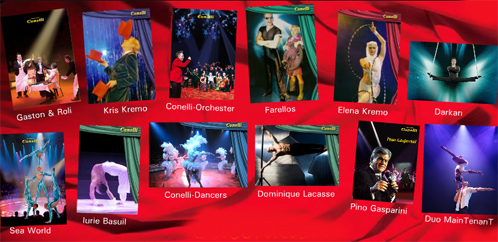 Im Bewusstsein, dass ein nachhaltiges Circusprogramm das Publikum unterhalten muss, ist Vielseitigkeit mehr als gefragt. Top-Akrobatik, träumerische Poesie, herzhafte Komik und musikalische Leckerbissen werden im Circustraum Conelli angereichert mit einer einmaligen Atmosphäre unter der Kuppel unseres romantischen Chapiteaus. Moderne Elemente sollen Sie ebenso begeistern wie Momente, die in einem klassischen Circus nicht fehlen dürfen. Ich versichere Ihnen: Diese Kombination ist pure Unterhaltung, und deshalb habe ich dem diesjährigen Programm den Namen „Conelli - That's Entertainment“ gegeben. |