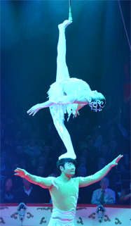 | Es ist mir bewusst, dass wir uns mitten im Unterhaltungszeitalter befinden. Das Angebot ist vielseitig und mittlerweile riesig. Umso mehr schätze ich, dass der Besuch unseres Circustraums für die meisten von Ihnen zum festen Programmpunkt während der Adventszeit gehört. Gerade deshalb ist es die logische Konsequenz, dass die Messlatte hoch liegt. Diese Tatsache stellt mich vor grosse Herausforderungen, wenn ich die bevorstehenden Programme zusammenstelle. Um die Besten der Besten zu kriegen, muss ich die Artisten deshalb zwei, drei oder manchmal sogar vier Jahre im voraus engagieren in der Hoffnung, dass dann alles noch so passt, wie ich es mir vorgestellt habe. Aber Circus wäre nicht Circus, wenn diese kleine „Ungewissheit“ fehlen würde. Circus ist eben nicht wie eine aufgezeichnete Fernsehsendung. Nein - Circus ist live! |
