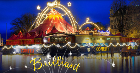 Top Akrobatik, träumerische Poesie, herzhafte Komik und musikalische Leckerbissen werden vom 21. November 2014 bis 4. Januar 2015 direkt an Ihren Platz serviert. Weltklasse-Artisten begeistern mit ihren einmaligen Darbietungen, begleitet von der traditionellen Live-Bigband unter der Leitung von Kapellmeister Alex Maliszewski. Im Programm „Brilliant Conelli“ erlebt das Publikum alles, was es von einem Circusbesuch erwartet: Artistische Spitzenleistungen, tolle Musik, extravagante Kostüme. Im Conelli darf aber auch gelacht werden. Seien Sie gespannt auf den tolpatschigen Blödsinn der Hausclowns „Gaston&Roli“ und weiterer Comedy. Achtung: Es wird lustig!